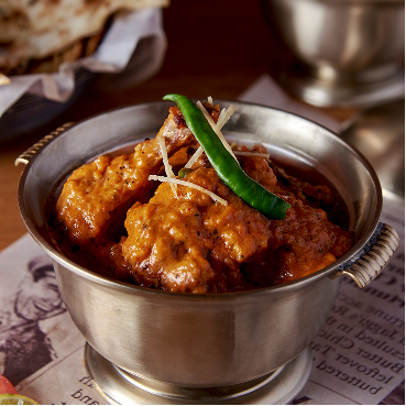 Butter Chicken originated at the Moti Mahal, Darya Ganj in the 1950s. The restaurant was famous for its Tandoori Chicken. The cooks there would recycle the chicken juices that were left over by adding butter and tomato. Once, be it by chance or by design, this sauce was tossed around with pieces of Tandoori Chicken. And the rest is history. Butter Chicken was born and soon set tongues drooling the world over. Butter Chicken is creamy with thick, red tomato gravy. It tastes slightly sweet. The sauce percolates into the chicken pieces, making them soft and juicy. This melt-in-mouth dish tastes best with tandoori roti or naan.